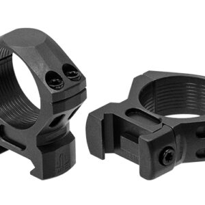 UTG prstani iz letalskega aluminija v črnem finišu. Ustrezajo strelnim daljnogledom s tubo premera 34mm in so namenjeni picatinny montaži. Visok profil z vertikalno razdaljo 32mm med središčem prstana in bazo. Ustreza daljnogledom z največ 63mm zunanjega premera objektiva.